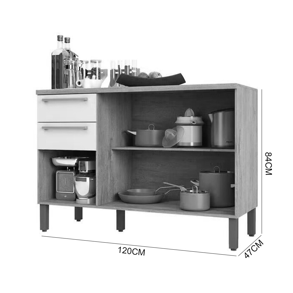 BALCAO RONIPA 3P 2G NAPOLI PRIME 120CM AMENDOA/OFF WHITE