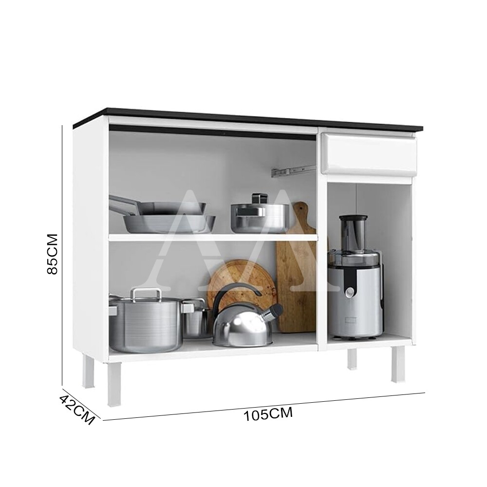 O balcão triplo com tampo Diamante New Smart da Telasul vai deixar sua cozinha mais bonita e elegante.