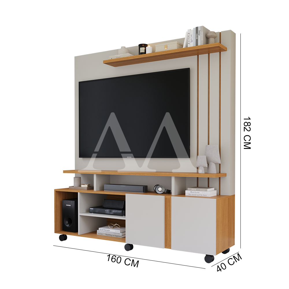 O Home Valência da Permóbili é um móvel moderno e funcional, ideal para salas de estar que precisam de organização e estilo. Ele comporta TVs de até 55 polegadas e oferece amplo espaço para eletrônicos e decoração.
