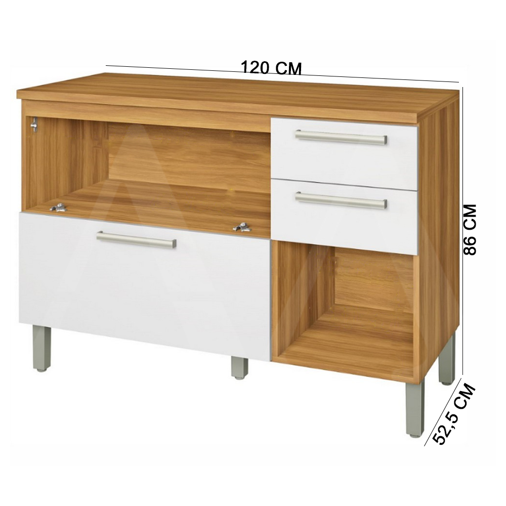 O Balcão com 02 porta e 03 gavetas da Nesher Burguesa Premium é ideal para compor a sua cozinha.