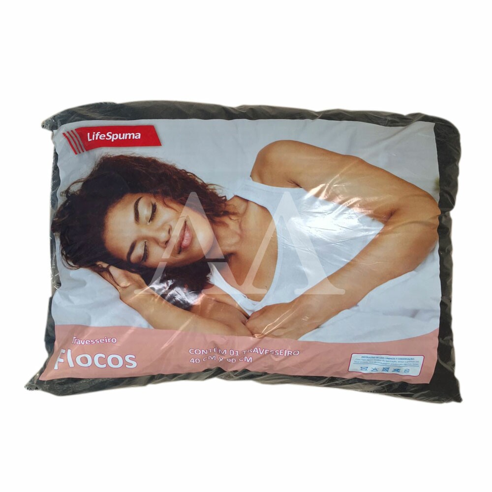 O travesseiro Flocos da Lifespuma é confeccionado com flocos de espuma de poliuretano, oferecendo suporte firme e conforto para uma noite de sono tranquila.