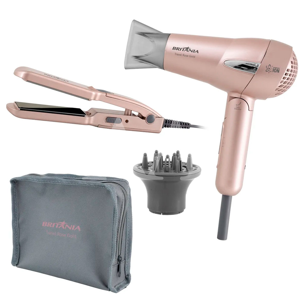 SECADOR E PRANCHA BRITANIA KIT TRAVEL ROSE GOLD BIVOLT