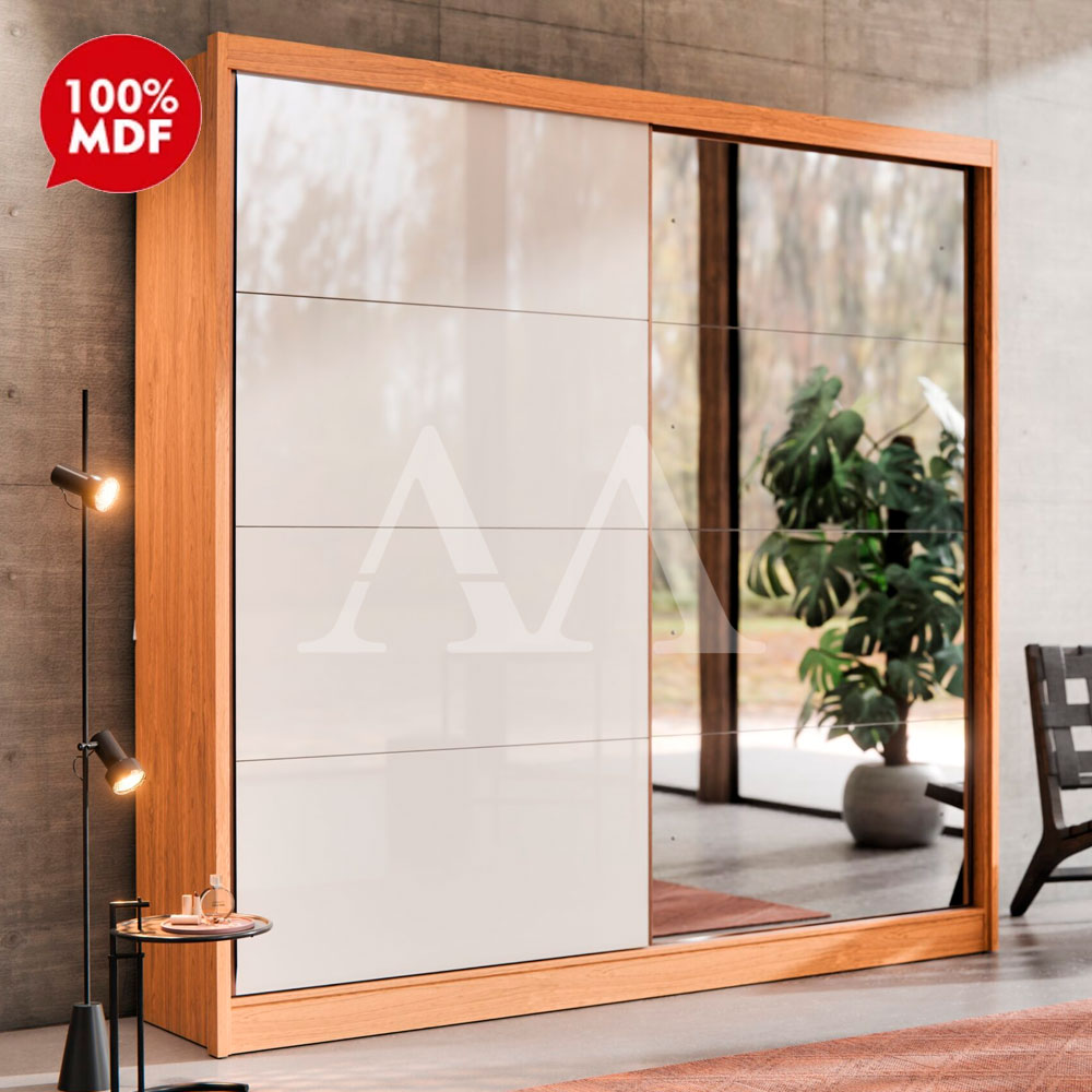 ROUPEIRO 2P CORRER 4G ROBEL STUDIO C/ ESPELHO FREIJO / OFF WHITE