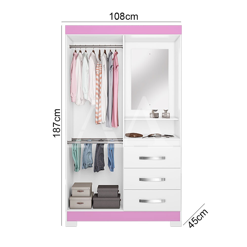 ROUPEIRO 2P. ABRIR 3G C/ ESPELHO NOTAVEL NT 5170 BRANCO NEW/ROSA FLEX