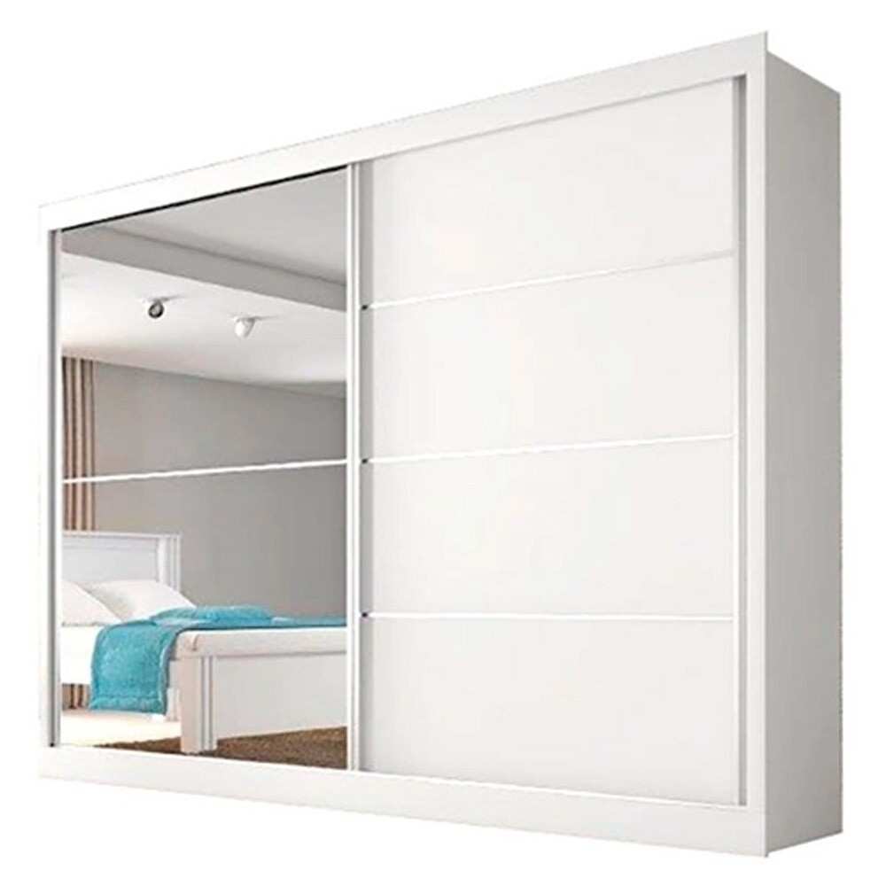 O roupeiro Verona Plus com um espelho da Europa da cor branco acetinado oferece ao seu quarto muita beleza e elegância. É ideal para quem precisa organizar roupas e acessórios de forma prática, pois apresenta excelente repartição e amplo espaço interno.
