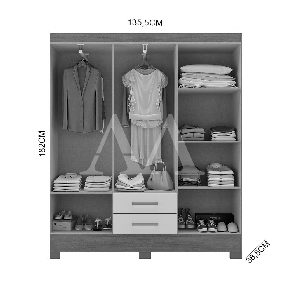 Obs: A parte interna deste móvel é branco gelo.