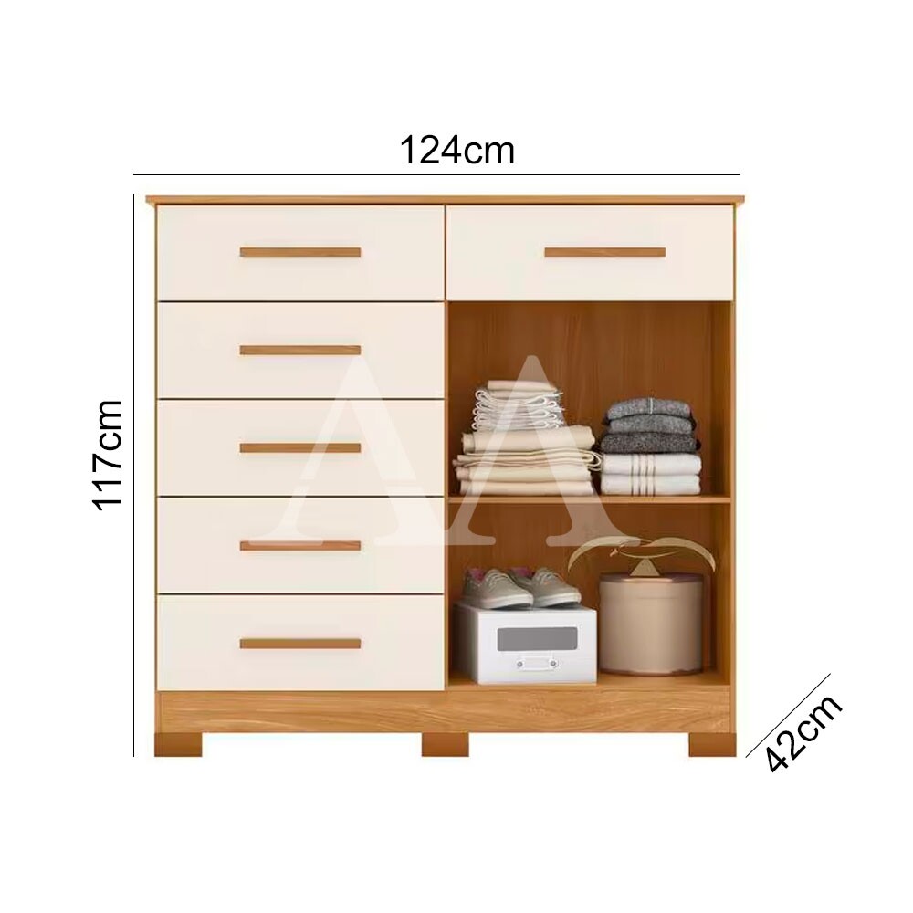A Cômoda Xangai da Albatroz é uma excelente opção para seu quarto porque permitirá que você organize uma grande quantidade de roupas.