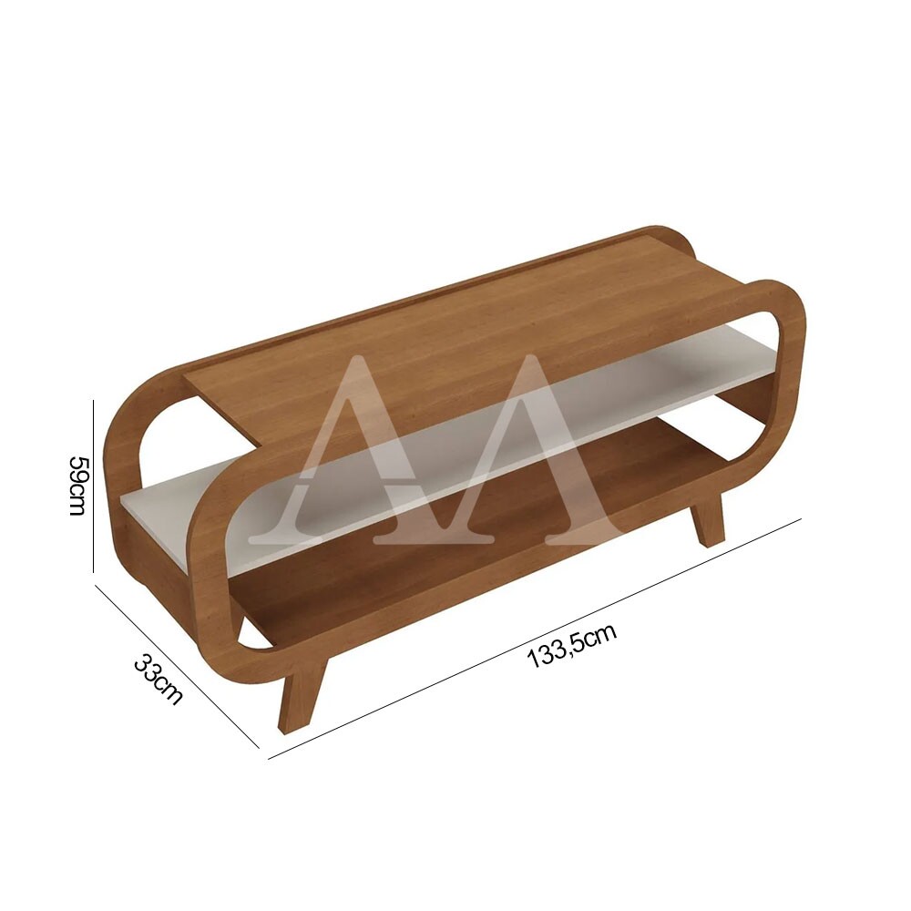 O Rack Theo é uma ótima opção para ser usado em ambientes pequenos, pois é compacto e funcional. Este produto suporta com segurança TV de até 42 polegadas.