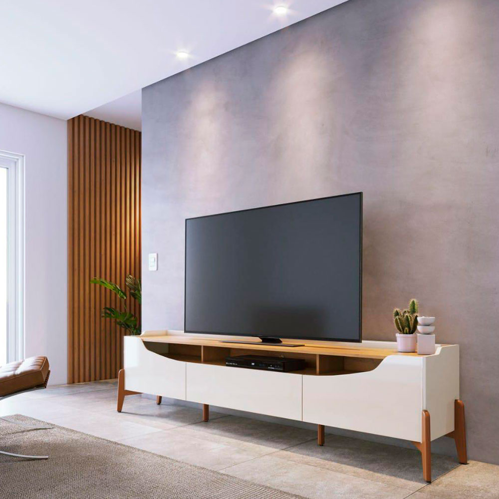 Com o Rack Bancada Para Sala Studio 1.8 Off White Nature - Imcal sua sala de estar ganha mais organização e um visual moderno e sofisticado.