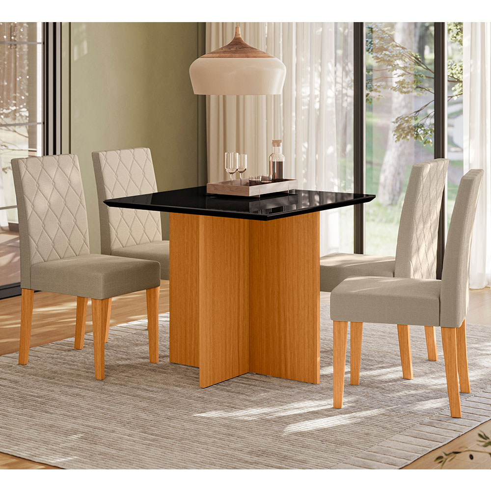 CJ MESA 4C POLIMAN HELO QUADRADA 90X90 C/VIDRO CAD JADE FREIJO/GRAFITE/PRETO