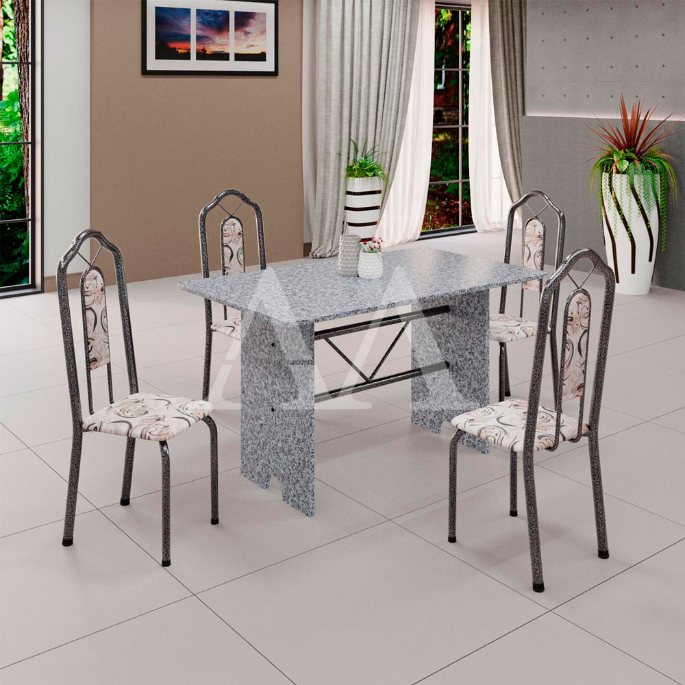 O conjunto de mesa Bianca com 4 cadeiras combina praticidade e elegância. A mesa tem estrutura em aço, que garante resistência e durabilidade, e tampo em pedra granito topázio, que dá um toque de sofisticação e beleza. As cadeiras têm design moderno, com encosto e assento revestidos em courino, que oferecem conforto e facilidade de limpeza.